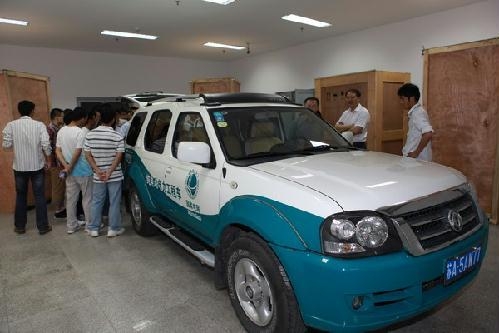 学子们饶有兴趣地参观并试驾体验电动汽车
